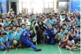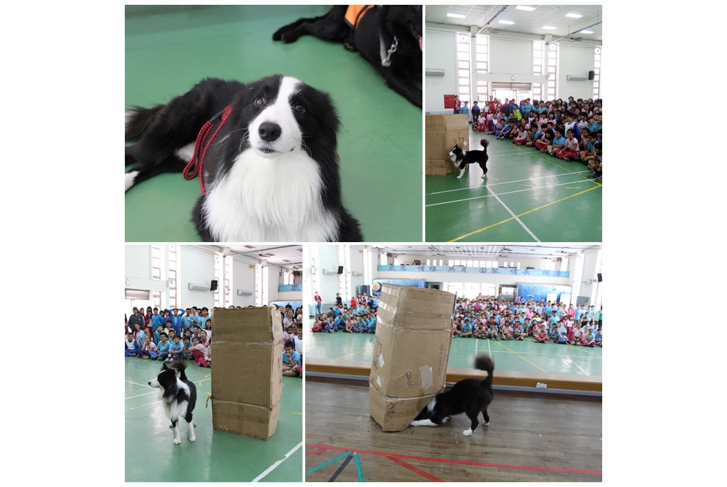今天的講座中,基金會力邀台灣精英國際搜救協會的專業搜救人員同行,向同學說明防災的重要,多隻搜救犬也在現場示範如何執行搜救任務,才能在瓦礫堆中搜尋到傷者。當搜救犬運用嗅覺找出由學生所扮演的傷患時,現場超過500名的學生都忍不住鼓掌叫好,可說將防災與救災的觀念具體且深入地向下扎根。