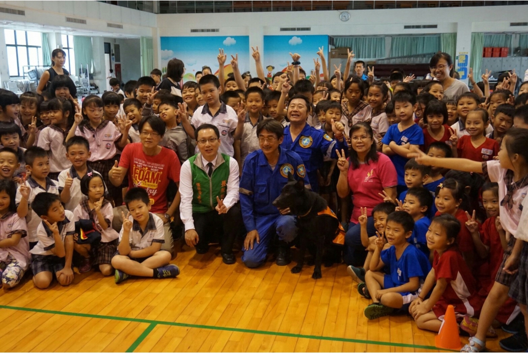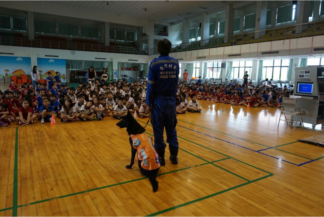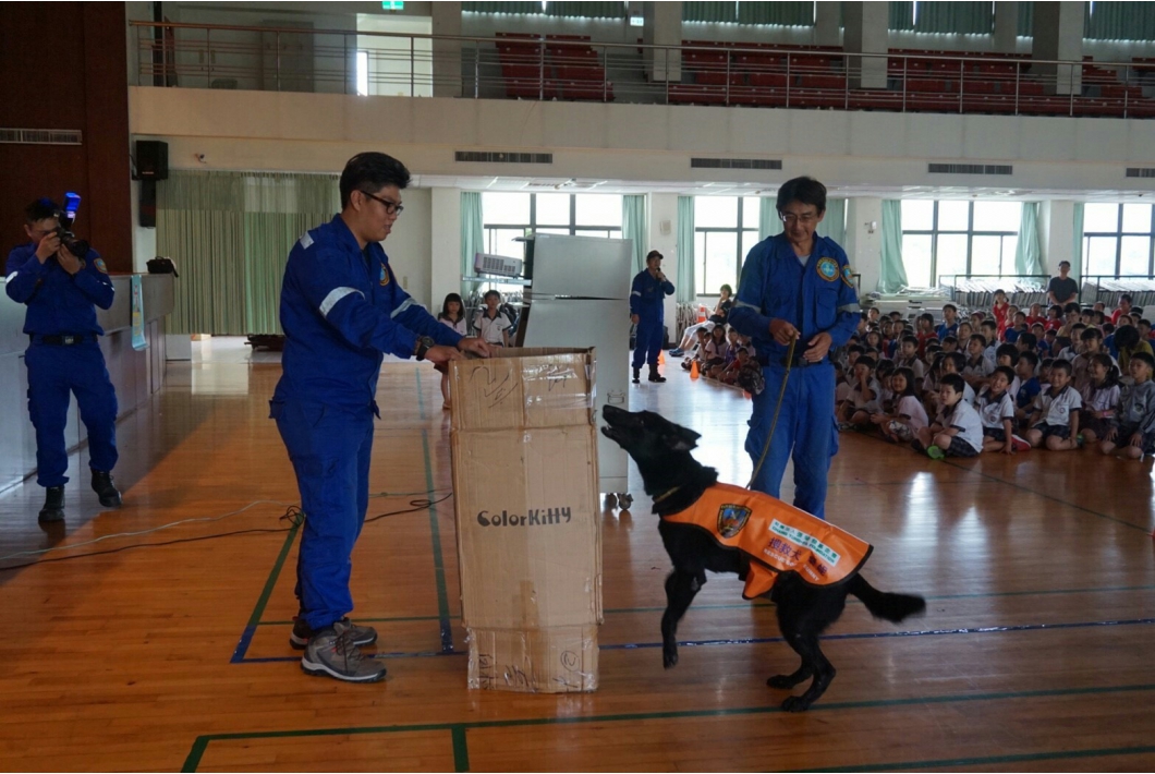 教官還透露,要成為一隻優秀的搜救犬,需要具備三種特性,「敏銳的嗅覺、貪玩的個性、還有愛吃!!」喔。看到同學們聚精會神的學習,相信這場防災教育活動,已經在孩子腦海中留下深刻的印象。