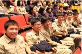 當穿著機師、空服、地勤整齊服裝講師群出場時,現場學生個個目不轉睛、發出陣陣驚呼,立榮總經理林志忠引言時表示:「台灣雖小但航空實力世界排名前段班,尤其是長榮、立榮持續購入新機,對人才需求殷切」,接下來機務、運務講師也針對問卷中同學想知道的內容,分別介紹定檢維修、地勤保安等作業,傳達完美旅程必須包含飛行前各項周全準備的概念;