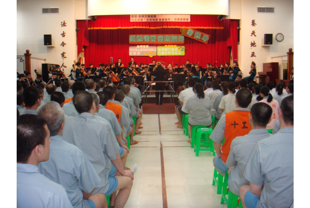財團法人張榮發慈善基金會長期致力於社會公益活動,成效卓越,近來為進一步協助矯正機關推展人文教育,安排長榮交響樂團,於6月14日假新竹監獄舉辦「長榮有愛、音樂無界」巡迴音樂會,乃繼4月10日臺北監獄、5月29日桃園女子監獄後的第三場演出,長榮交響樂團一連串動人心弦的演出,曲目包含多首旋律優美、膾炙人口的古典小品、法國香頌與各國民謠,如〈望春風〉、〈四季紅〉、〈旅愁〉、〈蘇羅河流水〉等,透過團員精湛的演奏技巧,悠揚的樂音時而如無波湖面靜謐安詳,時而如萬馬奔騰慷慨激昂,緊緊牽動著在場每一位觀眾的思緒與心情,著實令人感動不已,音樂會最後在大家熱烈且依依不捨的掌聲中,劃下完美的句點。