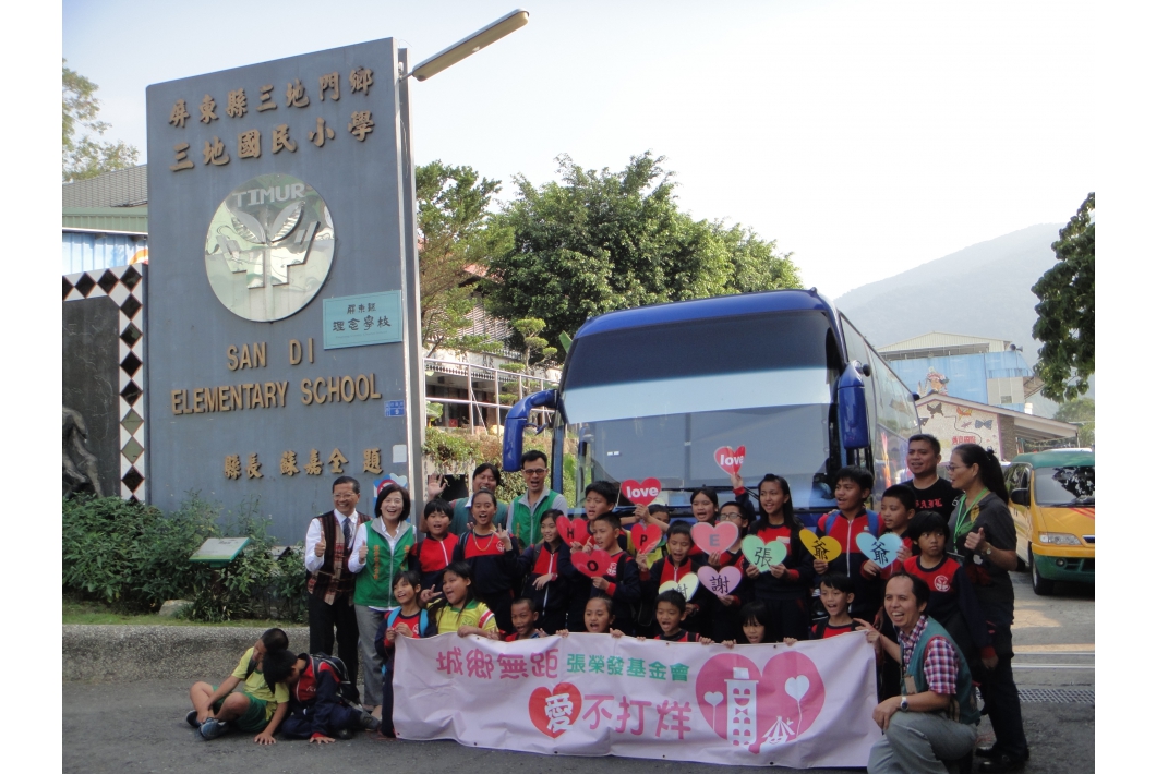 三地國小校長陳再興為此奔走四方,最後由長榮集團總裁暨創辦人張榮發先生慨然伸出援手,指示由基金會提供中型巴士租賃費用,每天至各部落接送學童至校本部上學,並於昨(27)日由基金會代表至校親自捐贈。學生們特地高舉英文大字報「HOPE」歡迎,感謝張榮發爺爺讓他們順利上學,讓未來有「希望」。