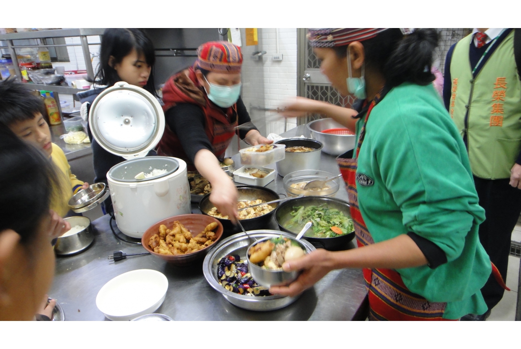 最後一站到大同國小,晚餐時間一到,孩子就會拿著便當盒,騎著腳踏車,迫不及待到學校特別幫孩子選的愛心廚房打飯,五道色香味俱全的菜餚,讓在旁邊等候的同學,口水直吞,老闆娘表示:「雖然做這個沒賺錢,但是心裡好滿足,謝謝張總裁照顧我們這些原住民的小孩」,另外有些同學住的較遠,無法留下來吃晚餐,學校也會用補助的餐費多買一點食材,幫忙「加菜」!孩子們也特地在用餐前祈福禱告,感謝總裁、協助安排的老師、還有所有參與的人員,讓她們有這一頓豐盛的晚餐。