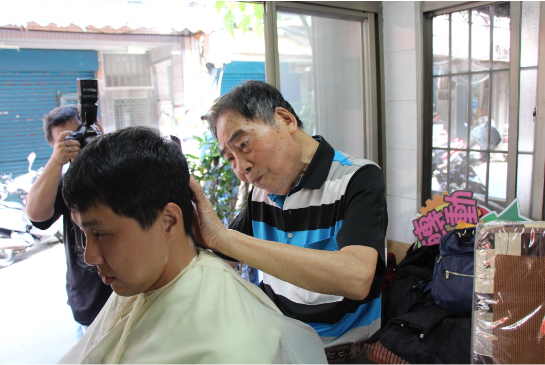 人瑞林爺爺在大同區開設理髮店,已服務鄰里三代60多年,華山基金會與張榮發慈善基金會感佩林爺爺高齡101歲仍工作不怠,為林爺爺提前歡度父親節。來自福州的林爺爺,隻身來台當理髮師,膝下無子女,妻子56年前過世後,為客人理髮成了他唯一的生活重心,三支刀走天下,雖然體能日漸退化,但仍繼續為老顧客服務。