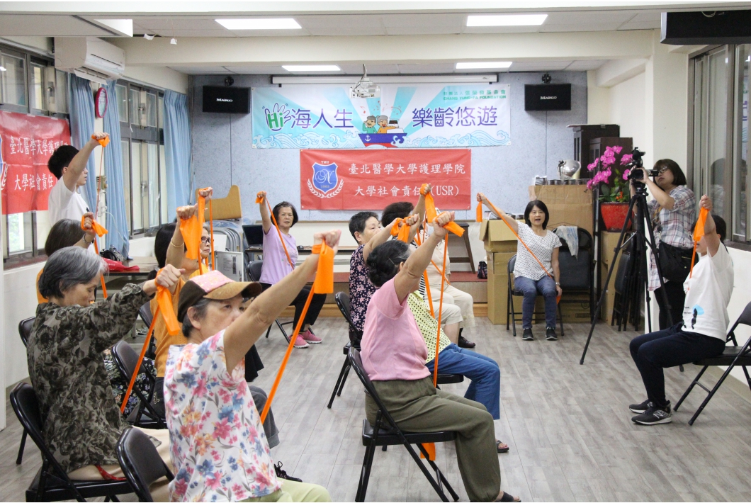 王奶奶表示,每次到這裡都可以看到年輕人,感覺很不一樣,同學們都很有活力,感覺自己也年輕起來。基金會表示,北醫運用專業知識,用彈力帶幫助長輩增強肌力,有更好的肌力,就不容易跌倒,保命防跌很重要。動手DIY香包、寫書法,也有助手眼協調、動腦,除了獲得成就感,也預防失智。主持計畫的高齡健康管理系主任林秋芬表示,台灣去年3月進入高齡社會,如何健康老化是大家共同追求的目標,感謝基金會贊助北醫計畫經費,幫助每個長輩重新找回「活躍的年華」,從走出家門開始,與鄰居、好友一起吃飯、聊天,為長輩帶來更多幸福的感覺。