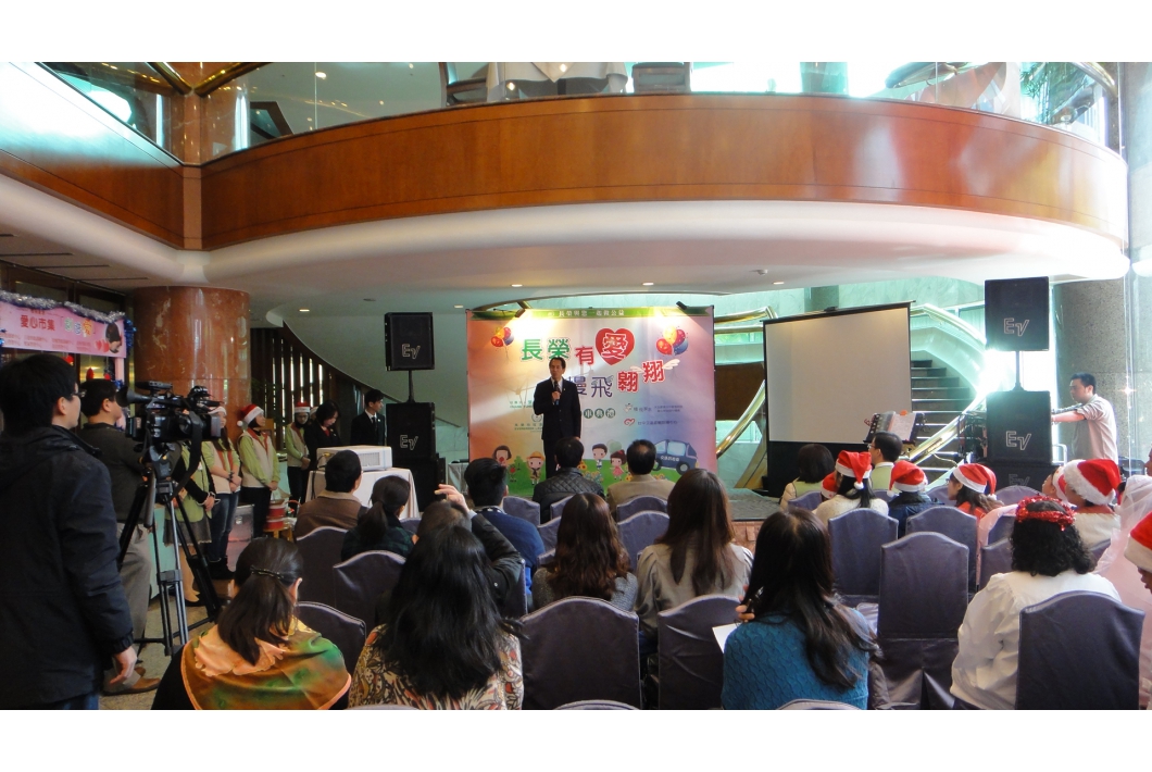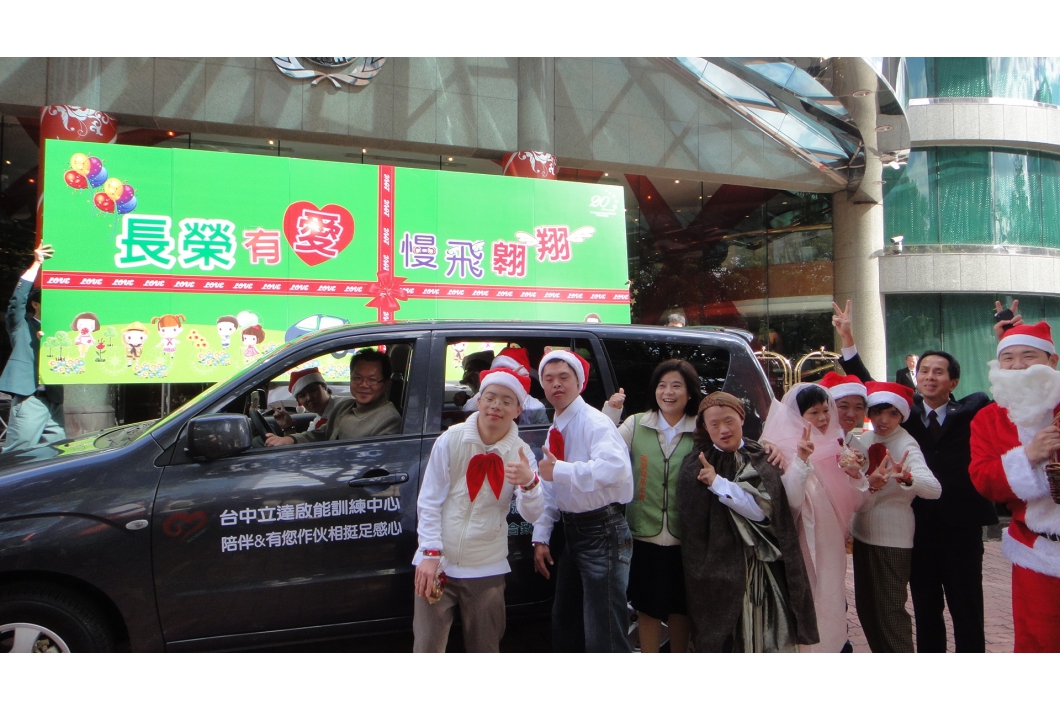 當天出席有天主教台中教區附設啟智機構徐世昭執行長、長榮桂冠酒店(台中)駱鴻榮總經理、酒店客人及各家廣播電台、平面媒體採訪記者。徐執行長致詞時表示:「每年耶誕老公公都會乘著雪橇送禮物,今年我們的雪橇來了,感謝張總裁送這麼貴重的禮物」。駱總經理表示:「酒店秉持總裁取之於社會,用之於社會的精神辦理這次活動,投入公益事業也是企業永續經營的指標」。當禮物進入現場時,所有來賓都很驚喜,因為該車被包裝成一個「耶誕禮物」,院生們都開心的坐上車,也用報佳音表達他們的感謝。
