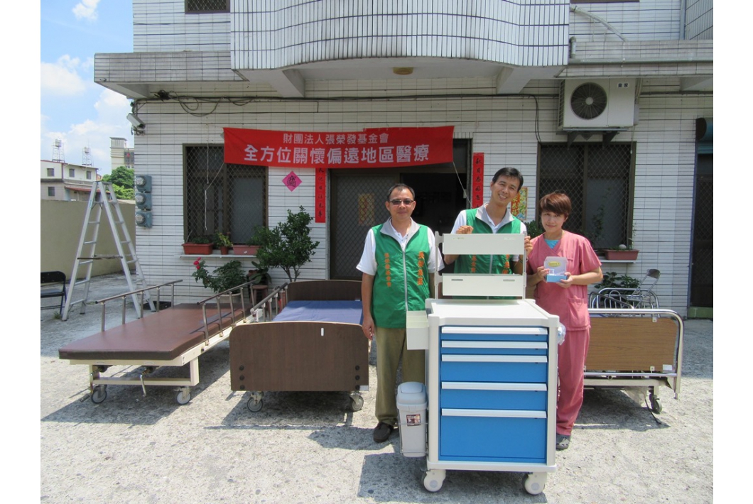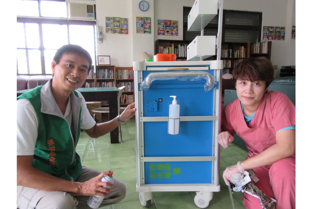 低調收容60名重症經濟弱勢病患的屏東關愛之家,因院內醫療設備極為簡陋,除買不起血氧機,也只能以跛腳回收電腦桌充當治療車,病床更是老舊故障,裡面的專業醫護人員被迫面臨克難環境。基金會得知後於6/24捐助全新訂做的治療車、血氧機,並發揮資源流通概念,媒合、出資運送宜蘭瑪麗亞照護中心備用的病床,本批物資價值合計19萬,除了給院民關愛也給醫護人員支持。屏東關愛之家收容經濟弱勢病患,避免他們流落街頭造成更多社會問題,其感謝本會於去年九月邀請參加行銷營外,亦在今年給予醫療器材的補助。