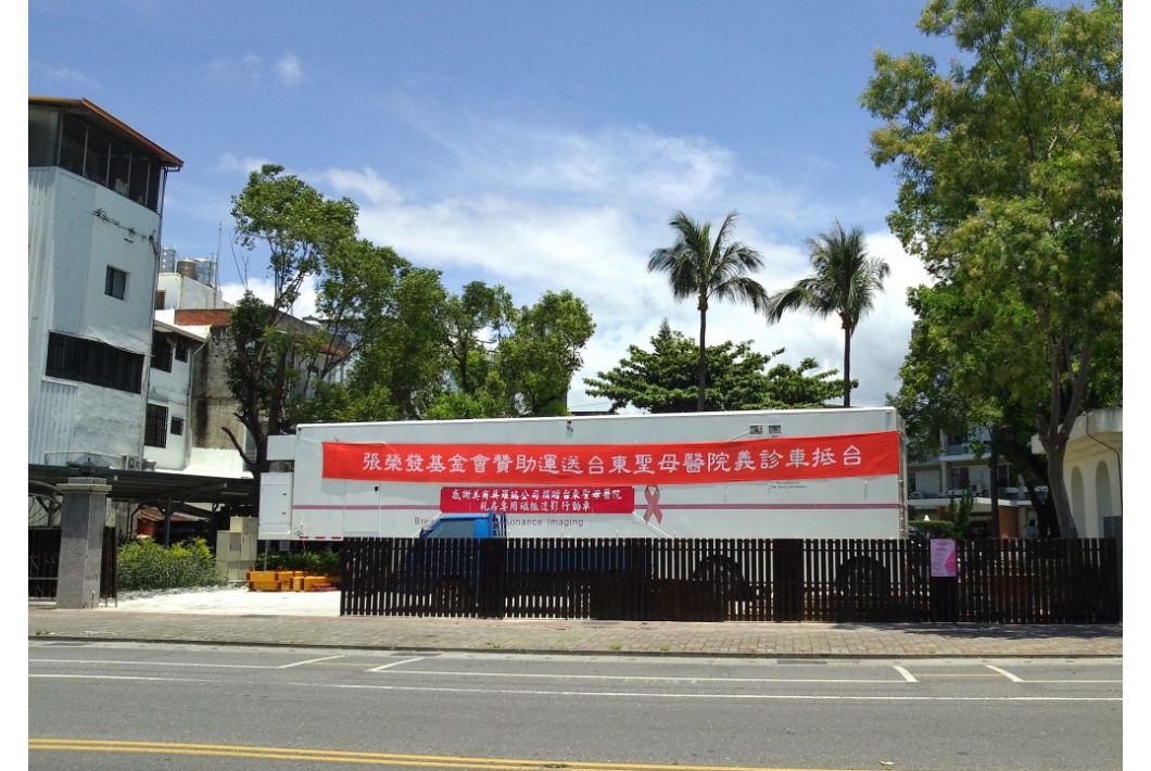 台東聖母醫院獲美商贈送全亞洲第一部乳房專用磁振造影系統(MRI)行動車,以進行偏遠地區醫療義診服務,但苦無從美國洛杉磯運送回台之經費,張榮發慈善基金會奉 長榮集團張榮發總裁指示,為提升偏鄉醫療水準,持續關懷弱勢民眾身心健康,特贊助該項設備運送費用。