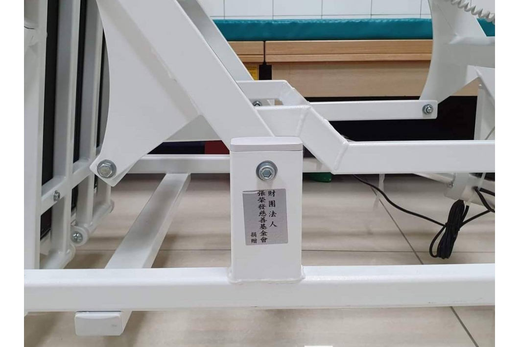 代表受贈的董事長林朋輝說,對重度身心障礙的朋友而言,氣壓式懸吊式跑步機的氣壓式減重懸吊系統,可減輕使用者體重約5~35公斤,在快走、慢走與跑步訓練過程中,輔助下肢肌力不足的使用者承重能力,減輕膝蓋負擔
