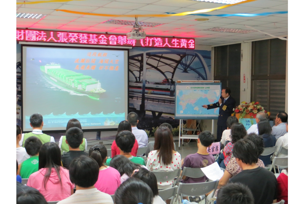 冬山鄉為農業鄉鎮,就業機會有限,各項資源相對缺乏,青少年日後生涯展望多限週遭所見,故此冬山鄉公所特邀基金會前往分享脫貧訊息,基金會以張總裁奮鬥歷程,鼓勵學子勇敢為未來逐夢,張爺爺出身於困苦家庭,但靠著自己的努力,如願成為一位船長,後來更開創長榮集團,因為同樣來自困苦家庭,他深知其中滋味,因此特別鼓勵年輕人從事海上工作,認為這是為家庭脫貧脫困最快的方法之一。當天長榮海運林沛樵船長,身著象徵榮耀與專業的船長服現身時,引起同學一陣騷動,林船長並用精彩有趣的簡報,向在座學生說明商船如何航行全球五大洋,及大船通過巴拿馬、蘇伊士運河奇景等,後更透過精彩影片,呈現駕駛萬噸船舶的實況,讓同學身歷其境。此外當大家看到船上住艙設施就像高檔飯店一樣舒適,忍不住直呼:「好想上船工作」。林船長同時指出,同學只要考上三副或三管輪等甲級船員,月薪就有12萬,往上爬到船長更可達27萬。一般非航海科系的高中畢業生,役畢後接受兩個月訓練,也可上船擔任乙級船員,月薪也達6.7萬,在場學生與家長紛紛流露出羨慕的眼神。林船長也表示,在海上除可以當到船長、輪機長外,岸上可以發展的領域也很多元,包括:領港、驗船師、公證人、攬貨人、船務管理等相關工作,最重要的是能站上世界舞臺,擁有多方歷練機會,開拓全方位工作視野。