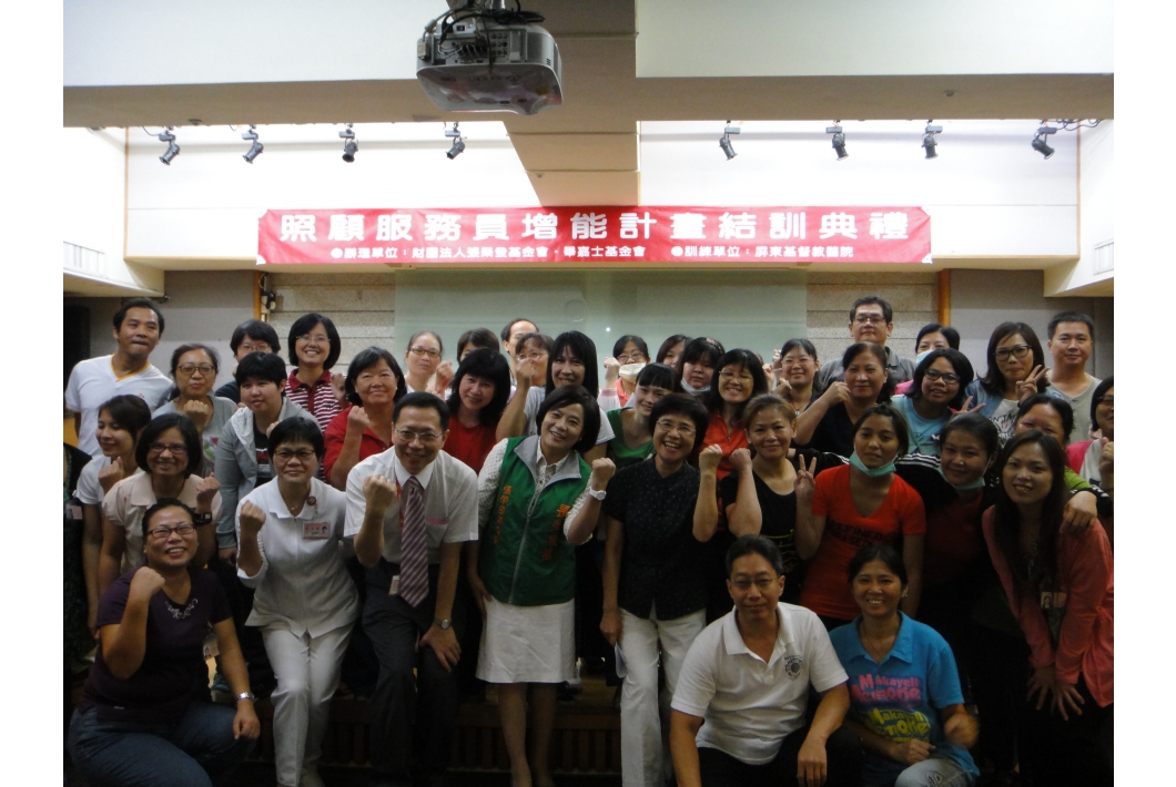 據內政部統計至8月底,全台65歲以上老年人口比例達11.8%,而屏東縣65歲以上人口13.8%更高過全台平均;推估縣內包含行動不便亟需照顧人數破萬,長照人力資源短缺,基金會與畢嘉士基金會聯手舉辦的長照「照顧服務員增能計畫」,今年總共進行七梯次新進資格訓練與在職訓練,昨(3)日於屏東基督教醫院舉行最後一梯結訓典禮,除新增130人取得照顧服務員資格,也幫助110名在職人員進行服務技能升級,希望有助解決偏鄉長期照顧人力不足及當地就業困難等窘境,並提升長照服務品質。