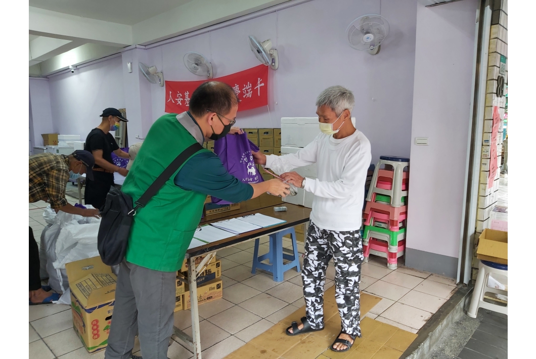 端午將至,氣候也逐漸炎熱,人安基金會萬華平安站舉辦寒士慶端午活動,邀請寒士參與,現場也贈送由張榮發慈善基金會認捐支持的500份「健康福氣包」及500份「側後背包」,期盼透過發放的生活物資,帶給弱勢族群更多鼓勵。