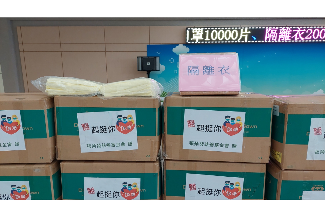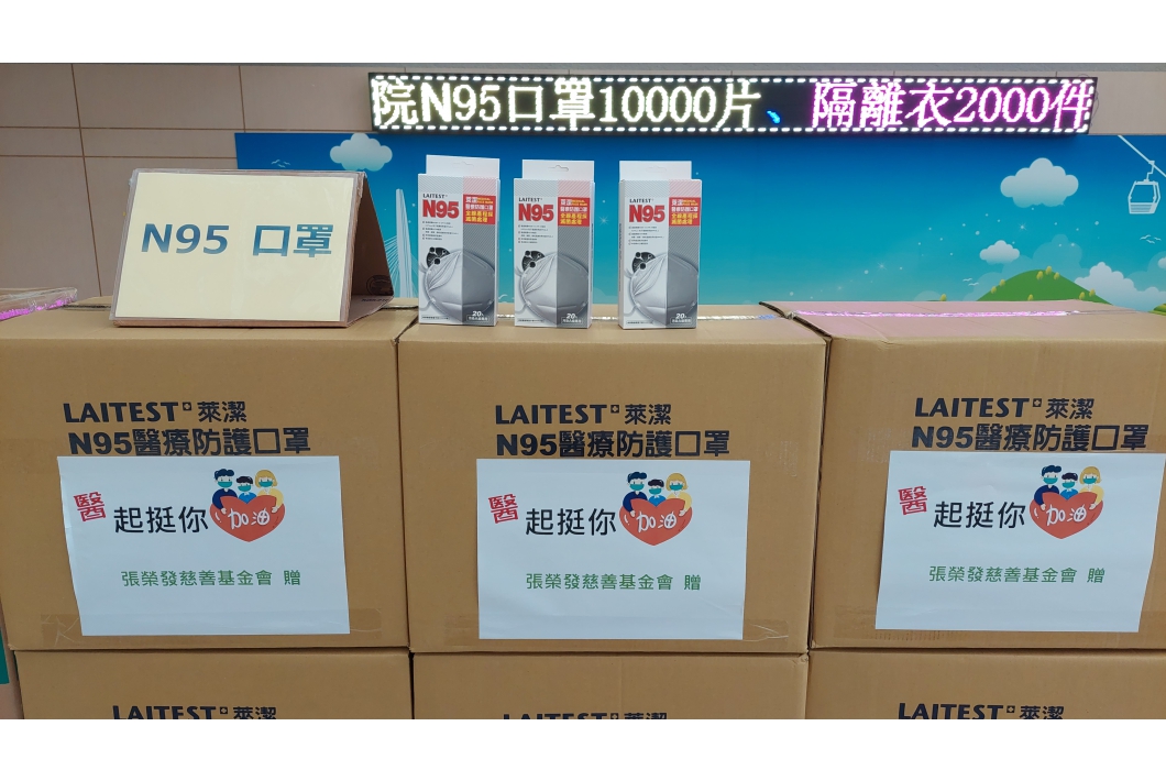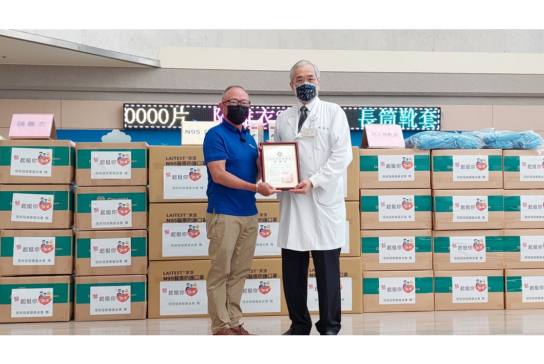 臺北榮民總醫院陳威明院長表示,感謝基金會的愛心,送愛到北榮,等於送愛到台灣,穿上你們送的防護裝備,除了保護自己也保護病人,還有工作同仁的家屬。北榮收治了最多的確診病人,也支援中正紀念堂防疫車來速、兒童疫苗注射等工作,更首創發放免疫低下的病人N95口罩,將基金會物資發揮到最大,因為取之於台灣,用之於台灣。