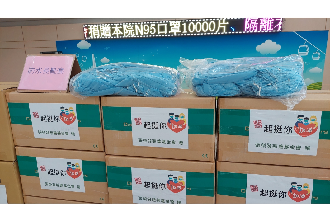 張榮發慈善基金會為感謝醫護人員日以繼夜地堅守崗位,扛起防疫重任,採購包含:2,000件防水隔離衣、2,000雙防水長筒靴套、10,000個N95口罩等防疫物資,由吳景明董事長親自率員捐贈予臺北榮民總醫院,共同為防疫貢獻一份心力,也為醫護人員加油打氣。
