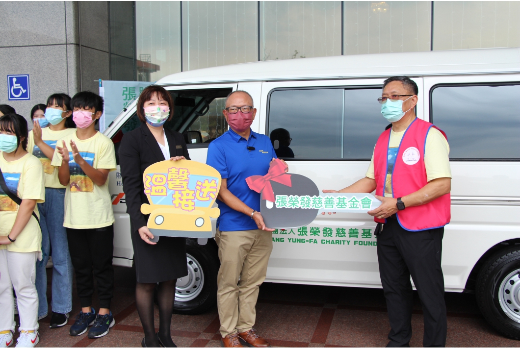 兒童之家服務對象多為原生家庭照顧疏忽,常因身心健康問題就醫;另外才藝舞蹈、合唱團課程需外出上課時往返接送,若遇行政洽公或其他活動同時辦理,常無法順利進行,家園人數激增,已有數次因為交通車不足,無法讓全數兒少參加的情況。基金會得知後立即捐贈八人座交通車一輛,當天由吳景明董事長親手將新車鑰匙交給主恩執行長徐華強,並與孩子們親切互動,招待豐盛自助午餐。