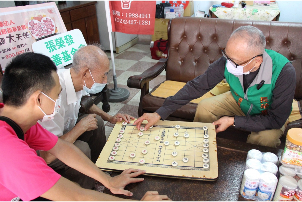 住在基隆81歲的王伯伯獨居未婚、視障中低收,雖有弟妹但少有連繫。年少時住山東生活困苦,來台後在造船廠福利社上班,視力衰退檢查後發現是青光眼,導致無法工作。後來到盲人協會學習技能,被轉介到醫院擔任按摩工作,近年因為客人不喜歡年邁的人服務,只好獨居在家。吳景明董事長前往關懷時除捐贈除濕機及生活用品,也陪伴王伯伯對奕象棋,讓王伯伯開心不已