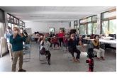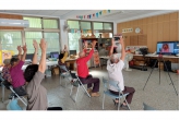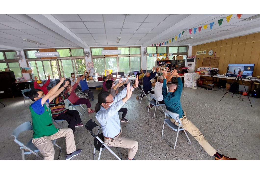 基金會今天特地受邀來到認養據點之一的東勢鄉月眉社區,一走進教室,看到長輩們已經興致勃勃地要體驗今天的肌力有氧課,有氧操搭配拳擊,不僅提升學員對課程的興趣,也能同時訓練肌力、增加心肺功能、鍛鍊全身的協調性。張榮發慈善基金會吳景明董事長也親自與長輩一同體驗拳擊有氧,不到5分鐘便滿頭大汗,看到長輩們跟著老師不斷移動出拳,賣力認真的樣子,活力不輸年輕人。緊接著是肩頸痠痛的衛教課程,老師線上指導長輩相關正確姿勢與運動,覺察、預防與改善肩頸部痠痛,也讓現場長輩收穫滿滿。