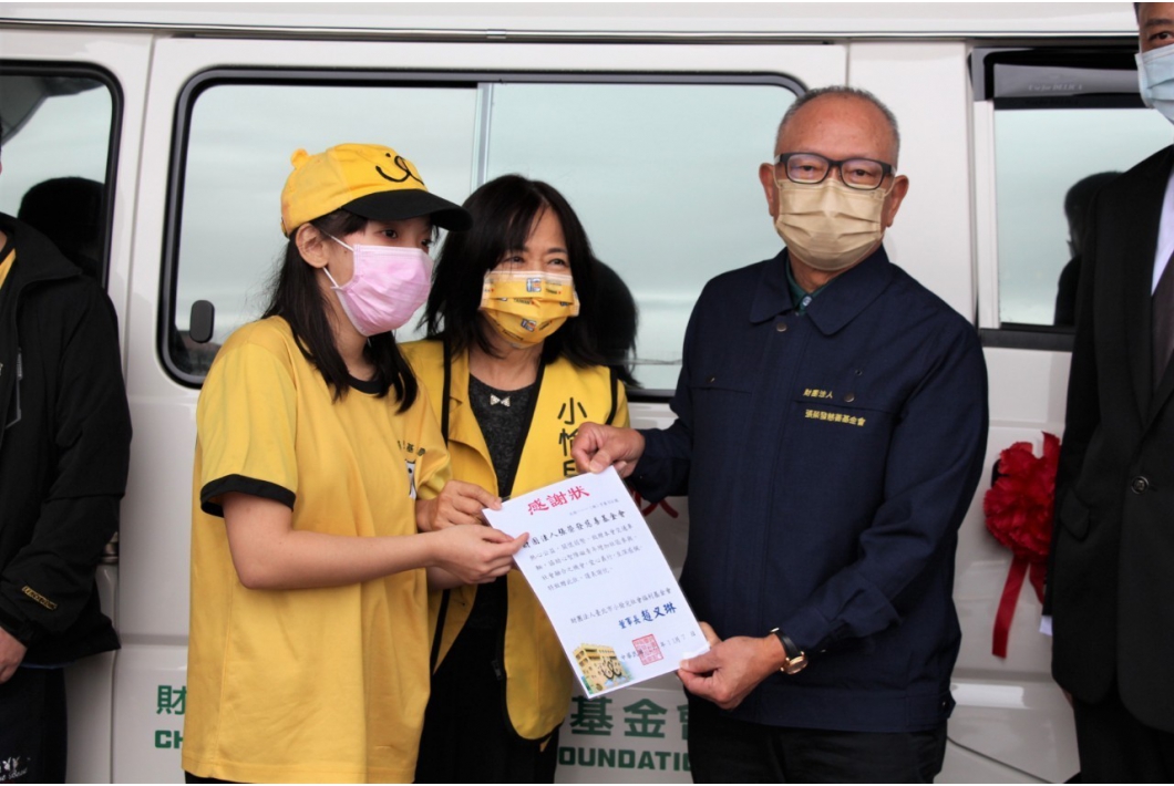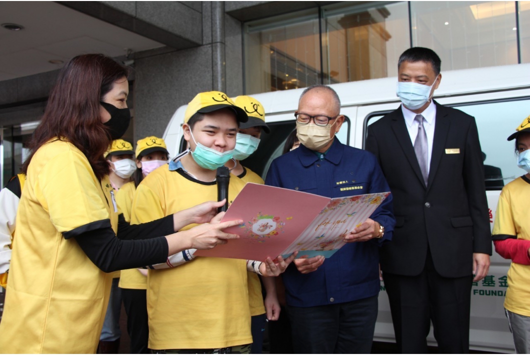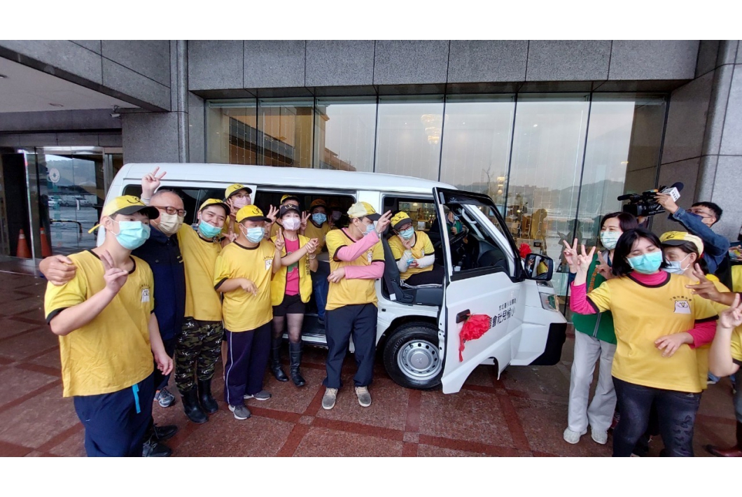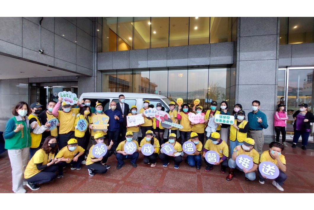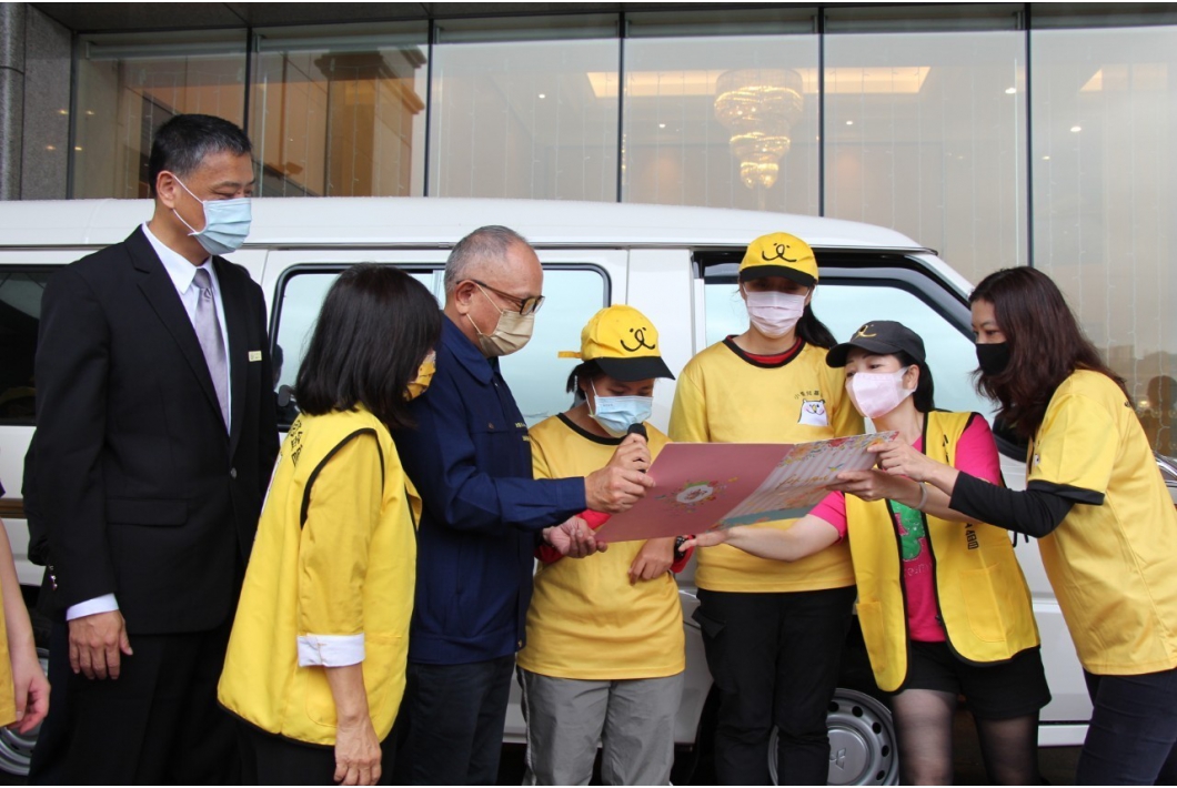 心智障礙者社會適應能力不足,超過18歲後如無單位持續照顧,將面臨生活、工作各方面問題,小愉兒基金會提供24位基隆、大台北地區心智障礙者家庭個案管理及職業訓練,近期將於新北瑞濱成立夢想家園,擴大服務需求接送車輛,惟資金有限無力購置,本會得知後贊助全新八人座車輛一部,並於11/7在長榮桂冠酒店(基隆)辦理「夢想成真 溫馨接送」交通車捐贈儀式,車輛命名為「快樂號」。