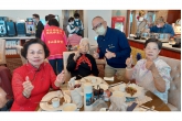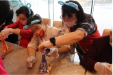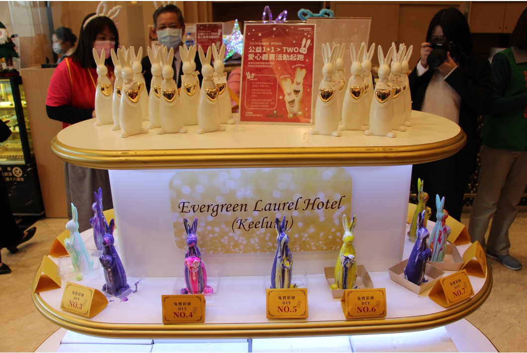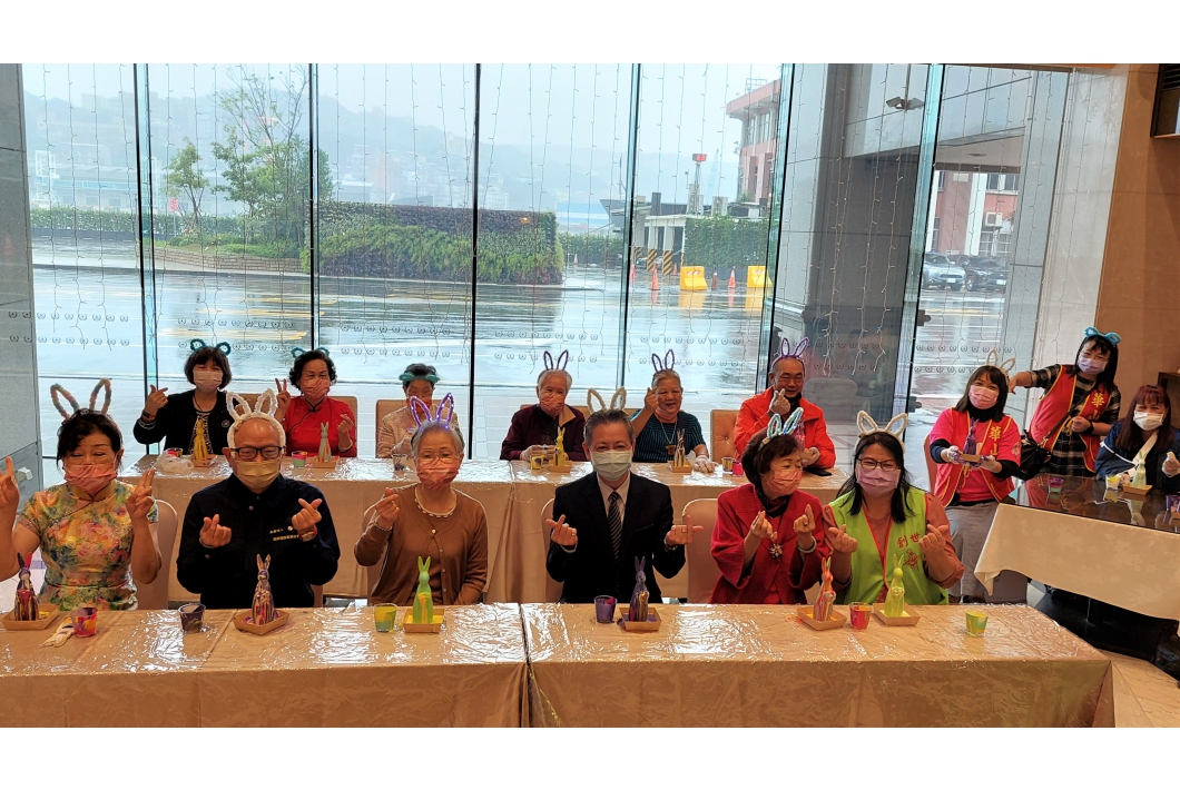 11/30適逢創世基隆分院19週年慶前,於基隆長榮桂冠進行起動儀式,本會吳景明董事長宣布認養100份提供義賣,活動也安排華山基金會七位創作者獨居長輩盛裝打扮,展現樂齡時尚風貌的自我價值,長輩們也紛紛說出兔年新願望,後與創世院民家屬共同進行流體彩繪,當五彩壓克力顏料被重力牽引滑過雪白兔身,每隻兔子都有了自己獨一無二的彩衣,繽紛滑順的線條令人感到療癒舒服。