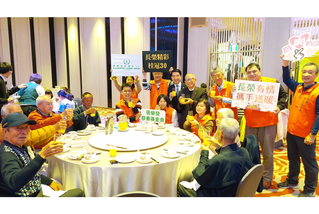 近日低溫頻傳,受疫情影響社福團體營運也面臨寒冬,適逢台中長榮桂冠酒店成立30周年,為適時傳遞社會溫暖,張榮發慈善基金會與台中長榮桂冠酒店邀請慢飛家族旗下的台中立達啟能訓練中心、彰化榮民服務處、珍愛加恩關懷協會、南投親愛國小、數位人道協會等5個團體約300人,今(7)於酒店舉辦「長榮有情攜手送暖-慈善關懷餐會」,用實際行動給予關懷,愛心廠商歐文瓷李奇茂大師及山川富公司得知後也贊助福米、毛帽攜手送暖。當天出席的有張榮發慈善基金會董事長吳景明、台中長榮桂冠酒店總經理黃志廣、立達啟能訓練中心主任黃明雅、彰化榮服處處長楊雨榮、珍愛加恩協會牧師王素真、親愛國小校長詹素娥、數位人道協會執行長潘人豪等。