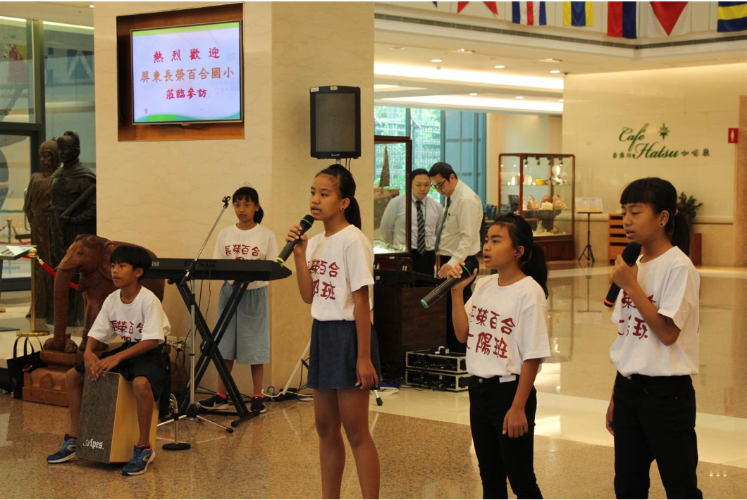 長榮百合國小為莫拉克風災受災學校,本會2012年協助全校重建,校方4/19畢業旅行期間拜訪本會。因該校位處屏東瑪家鄉偏鄉,學生家庭經濟狀況不佳,故本會招待午餐餐點及免費參觀海博館,協助學生拓展生活視野。