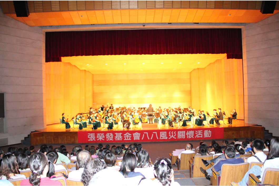 莫拉克風災後,張榮發慈善基金會安排「長榮交響樂團」至各地演出,希望藉由音樂,撫慰災民受創的心靈;今年是風災後第3年,特別與台東縣政府合作,今晚在台東文化中心舉辦「莫拉克三週年紀念音樂會」。長榮交響樂團特別邀請夫人周美青、台東縣長黃健庭,共同在中秋節前夕,陪伴風災學校師生及台東家庭扶助中心寄養家庭及扶助兒童,聆聽一場別富意義的交響盛宴。