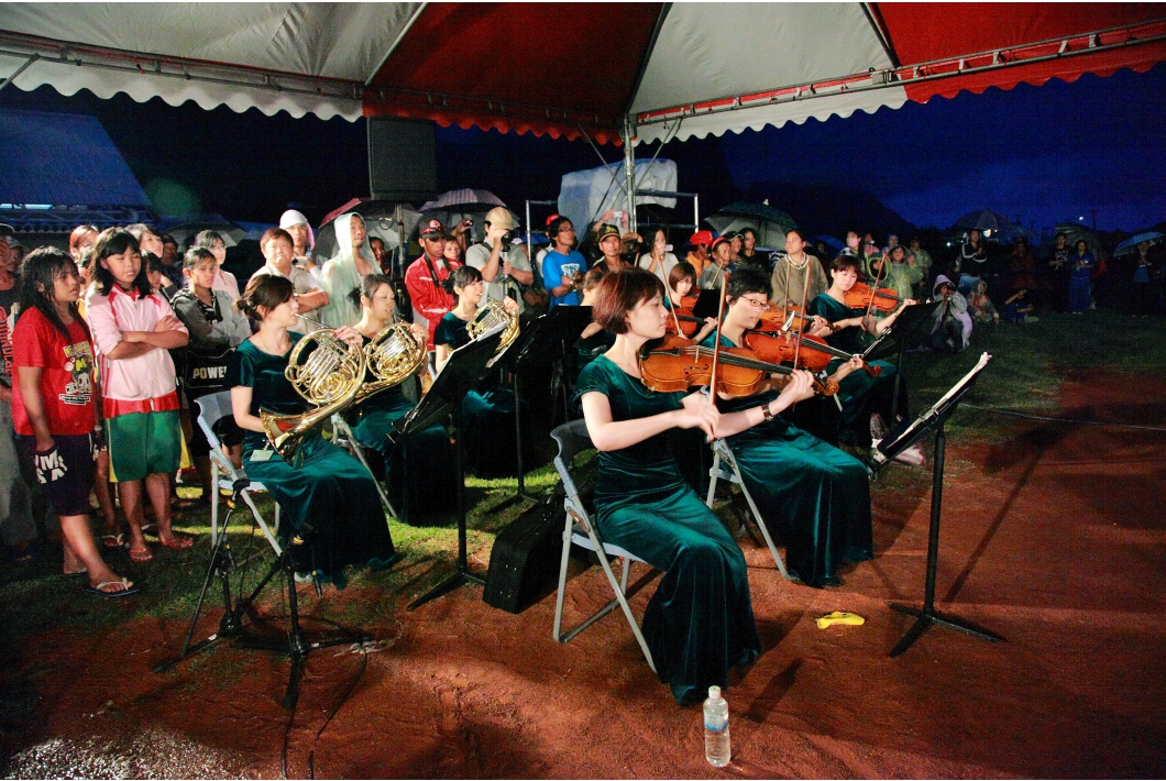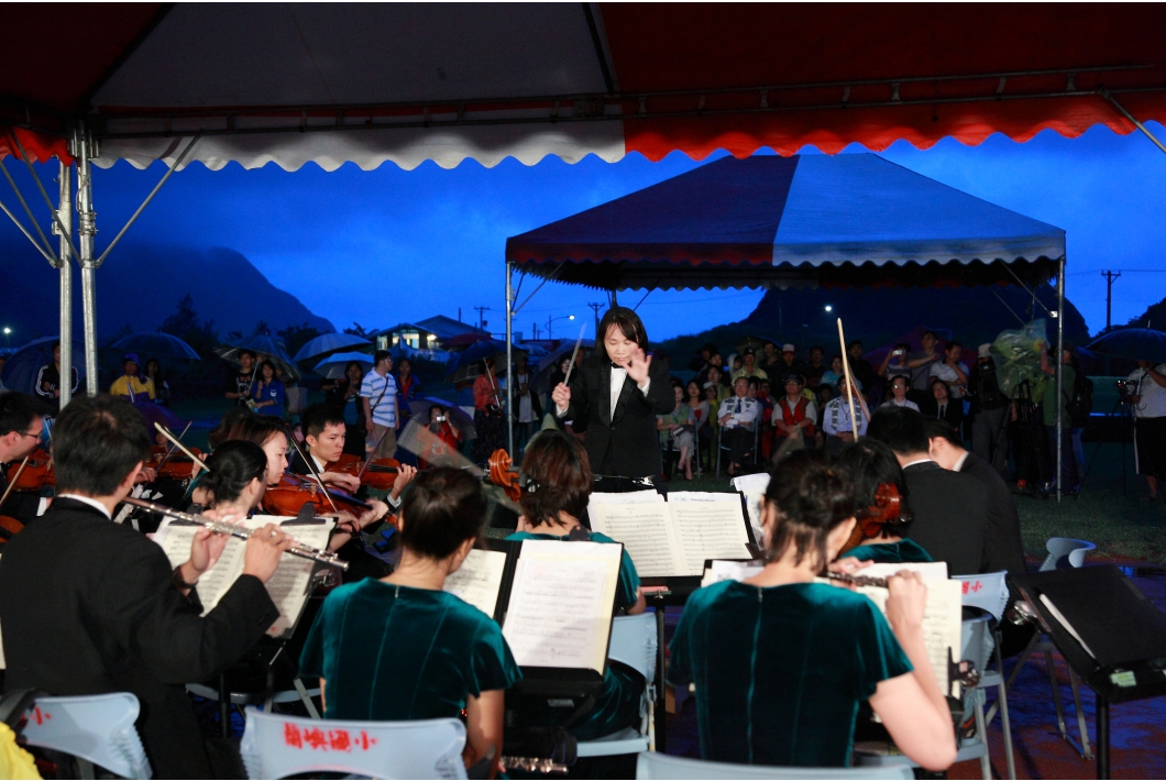 基金會深感都市的小孩,隨時有音樂會可以欣賞,但對離島的小朋友,也許一輩子才有這麼一次機會;因此決定在大樓落成時,一定要安排長榮交響樂團全團到蘭嶼表演,並利用機會跟小朋友交流,介紹交響樂的特色及示範教學。當天交響樂團在漏雨的帳棚下克難式的演出,精采的表演帶給大家不同的感受,這是蘭嶼鄉民第一次近距離聆賞樂團表演,有鄉民直喊好棒,也有人說感動得想落淚。