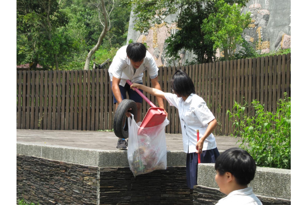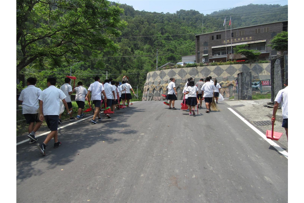 5/3的打掃活動是利用中午時間進行,從學校出發打掃周邊公園、戶政事務所、馬路等,完成後同學也以大合照感謝本會的協助。