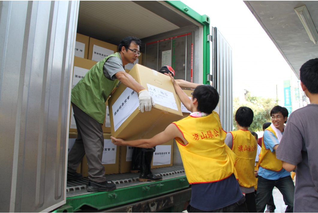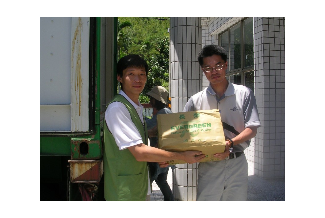 長榮集團旗下的海、空、陸運之公司,也全力協助運送緊急救災的物資及人員,如長榮航空、長榮國際連鎖酒店在第一時間供應毛毯、棉被、大浴巾、床單等保暖衣物,張榮發基金會則緊急採購三千套衣服,送往災區。那時候,莫拉克颱風嚴重破壞台東與高雄間鐵、公路交通運輸,張總裁也要求基金會協調集團旗下立榮航空在南橫中斷期間,免費運送救災物資及救難人員。因應莫拉克風災成立組織救災團隊,基金會依搶救時間區分賑災期、安頓期和重建期。賑災期間,基金會鎖定南投、嘉義、台南、高雄、屏東、台東等受災嚴重縣市,訪查人員分組進行災情蒐集,每兩小時回報災情狀況及所需基本民生物資,另一批支援人員待命出發,總計訪查員投入救援超過三百人次數。後勤人員則配合緊急採購及調度,備妥物資後,即刻送往災區,期間供應長榮空廚製作的餐盒、麵包及油飯,提供長榮國際π礦泉水,全新衣物、毛巾、牙膏、牙刷、免洗褲襪,讓災民能維持基本衛生。